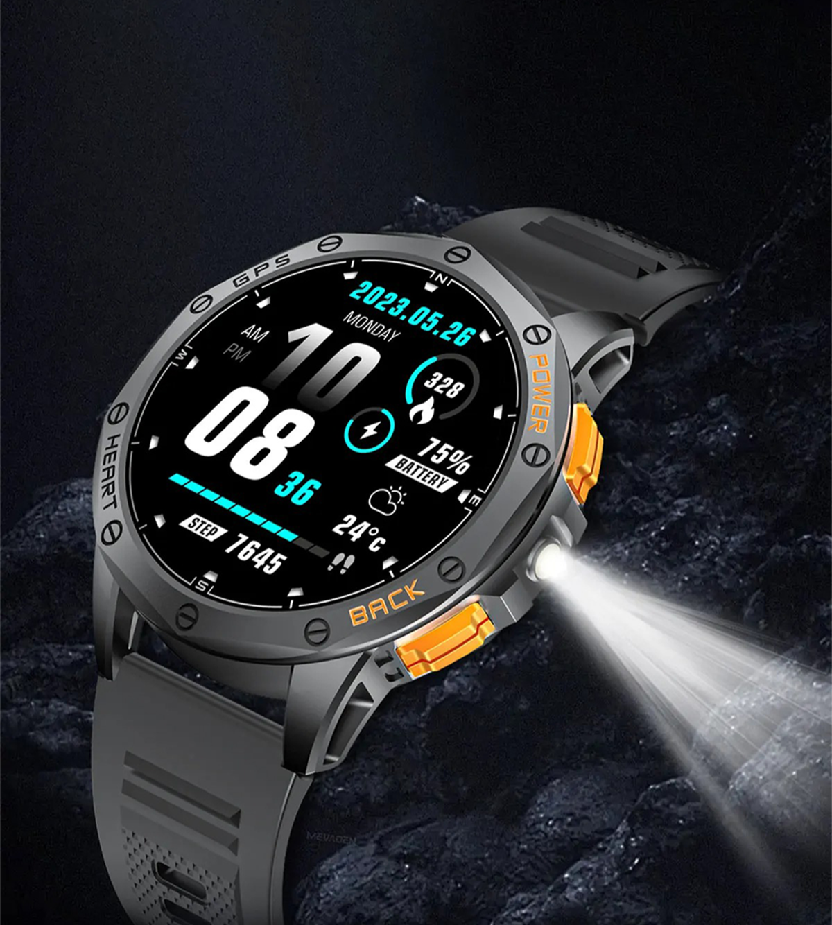 Docenisz nowoczesny design, wytrzymałą konstrukcję i długą żywotność baterii 530 mAh, która działa do 10 dni (w zależności od użytkowania) i nawet 30 dni w trybie czuwania. Ten smartwatch to połączenie mocy, stylu i niezawodności w sportowo-militarnym wydaniu.