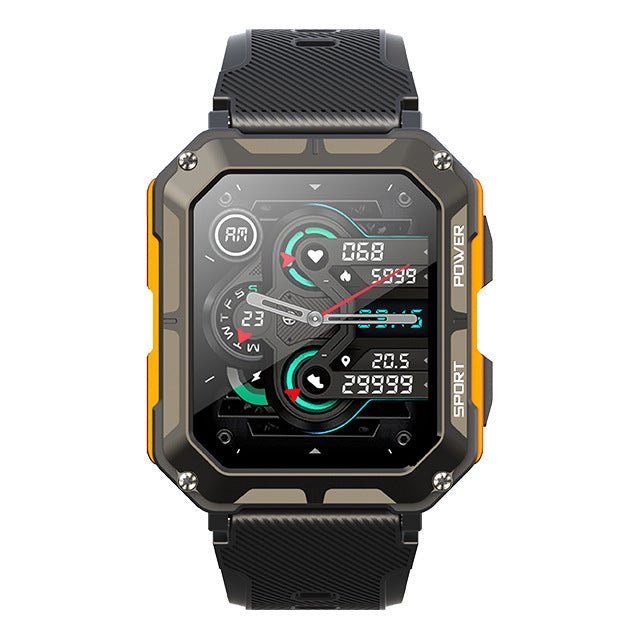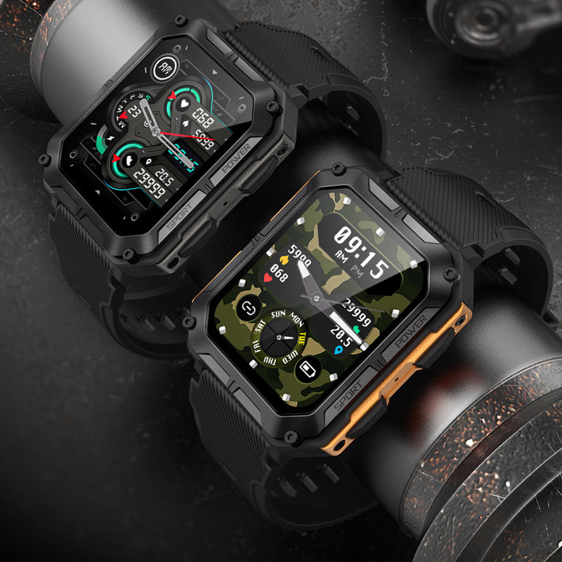 Docenisz nowoczesny design, wytrzymałą konstrukcję i długą żywotność baterii – do 7 dni pracy bez ładowania i do 30 dni w trybie czuwania. Ten smartwatch łączy funkcjonalność z trwałością w militarnym stylu.